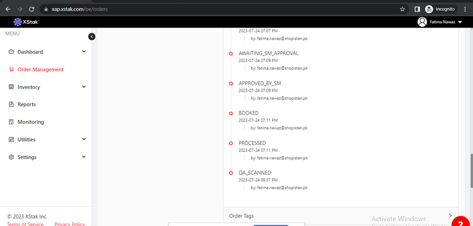 Now, open the Order History, where you will find a comprehensive log of all actions performed on that order and the associated user ID.