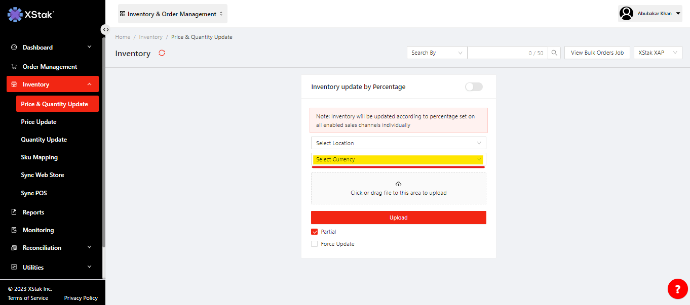 Example Scenario: In a scenario where there are two stores, for instance, PKR and USD, and a user intends to update the price and quantity on the USD store, the system will prompt them to select USD as the currency. This precautionary step prevents inadvertent updates in the base currency (e.g., PKR).