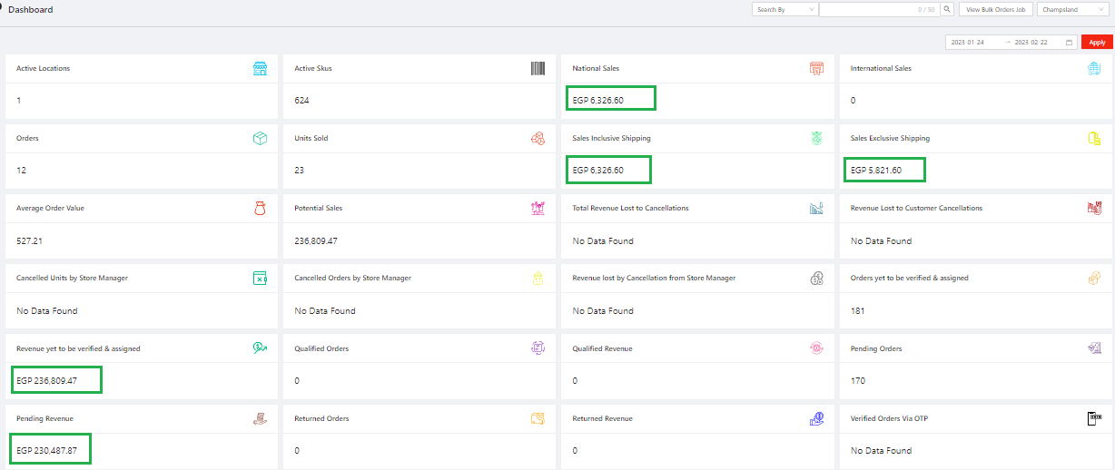 “PKR” is the currency being shown for Brand in dashboard , while they want it to be “EGP“ (Egyptian Pound). So we need to replace PKR with EGP. Now EGP is being displayed for the all the metrics in Dashboard instead of PKR.