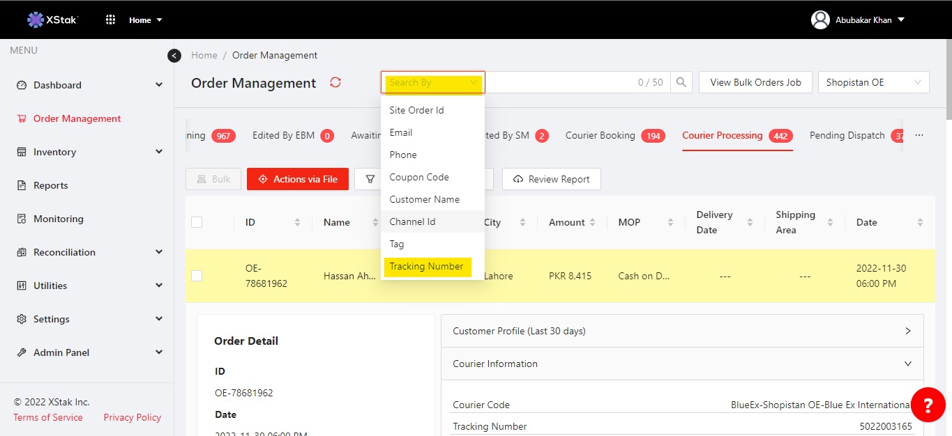 A new feature on OE “Search Orders by Tracking Number “ that allows you to search for your orders using a tracking number. This feature will be particularly useful for orders in the following statuses: