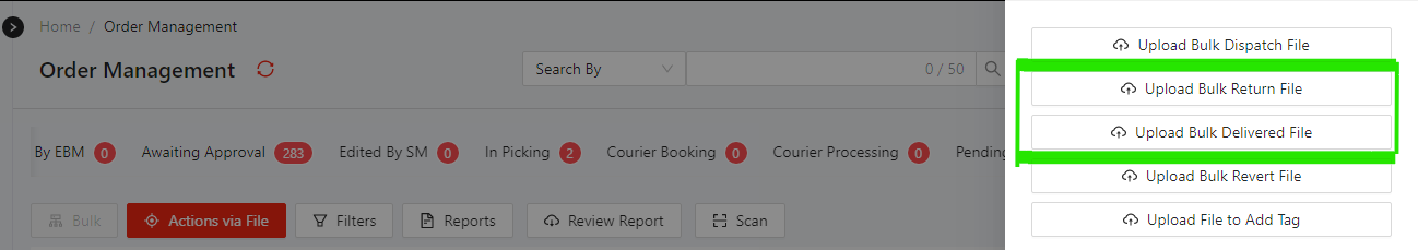 Option to mark order deliver/return via file