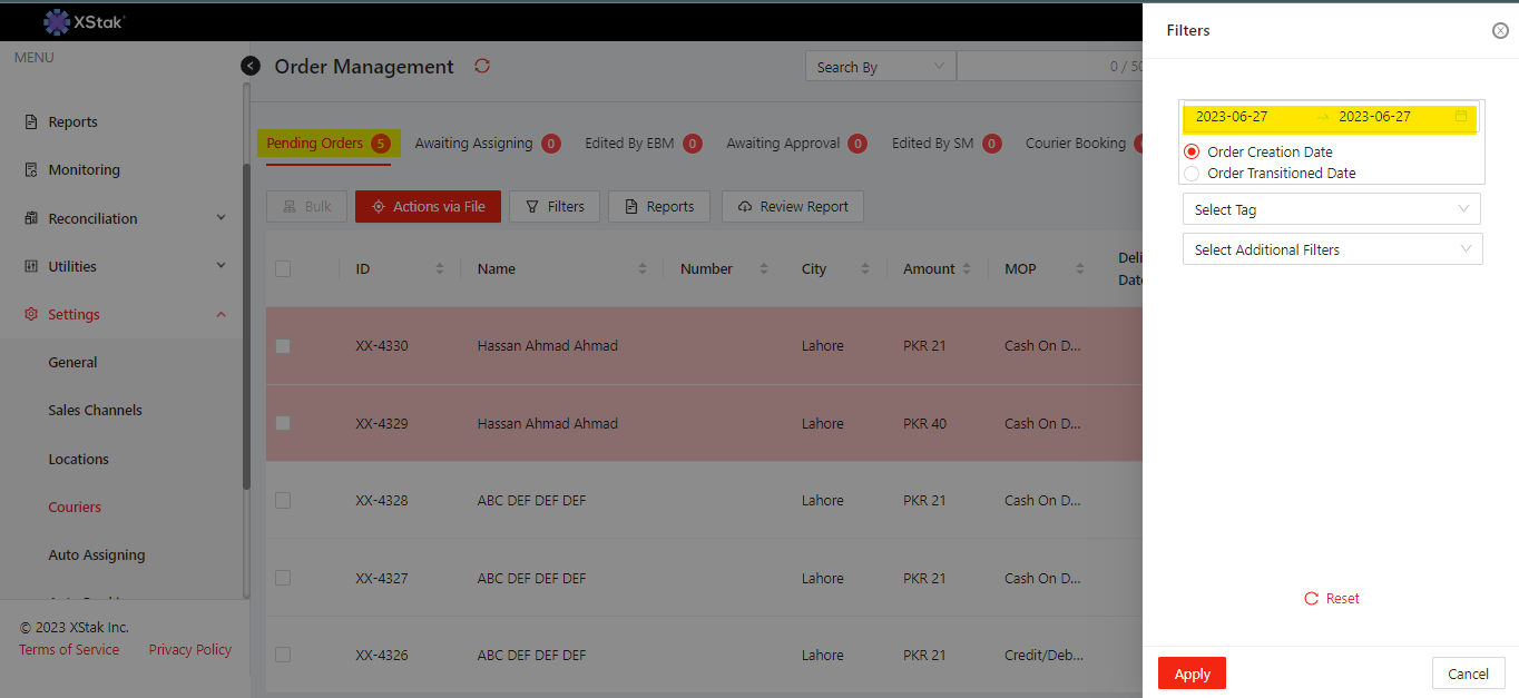 Previously by applying a date filter, it shows the count of all orders. This was fixed and deployed to XAP_Live.