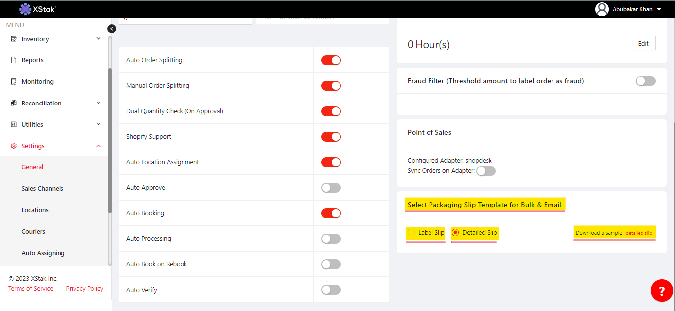 A feature that allows the users to select the size of the packaging/CN slip for labeling. The goal was to provide an option for the user to select the size of the slip (Label or Detailed packaging slip). To achieve this,
