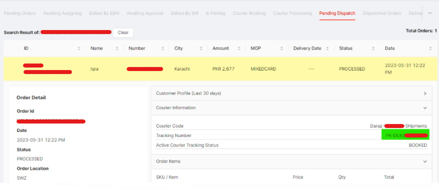 The tracking number & Airway Bills for Daraz are now generated through OE.