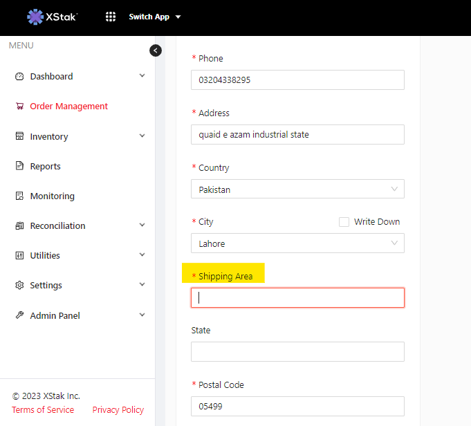 Shipping area in the customer details section of orders. This feature now allows for the convenient editing of the shipping area, providing you with more control and flexibility in managing orders.