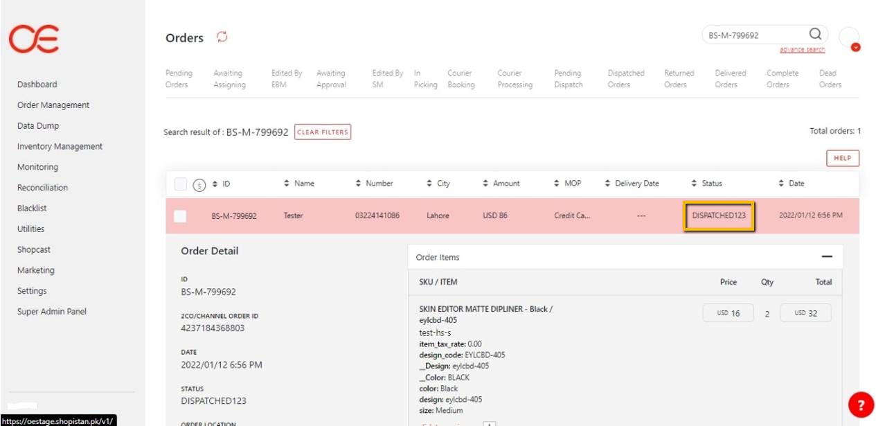 When an order was searched in the OMS, if its Status was disturbed, OE threw Non Existing Status