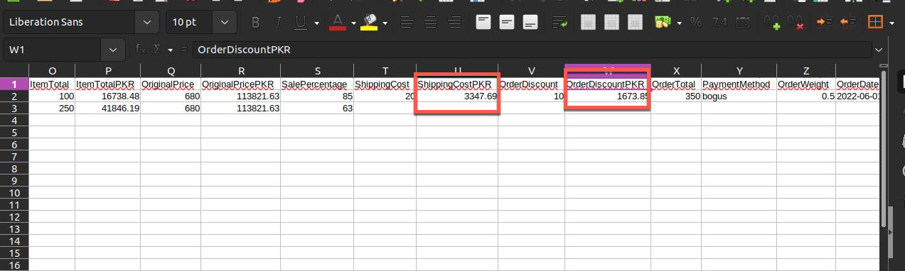 5. Adding PKR columns as well against the shipping charges and order discount columns, those are showing in dollars.