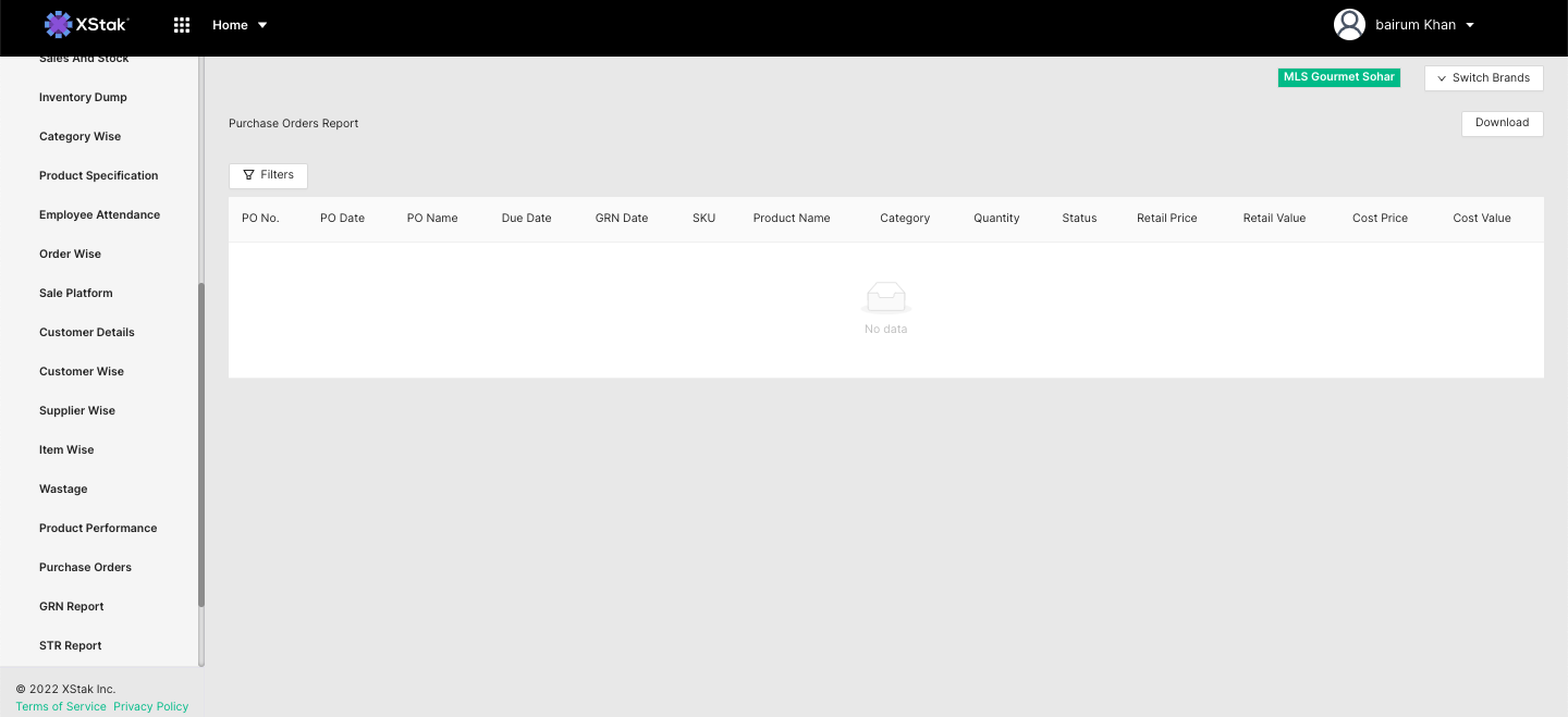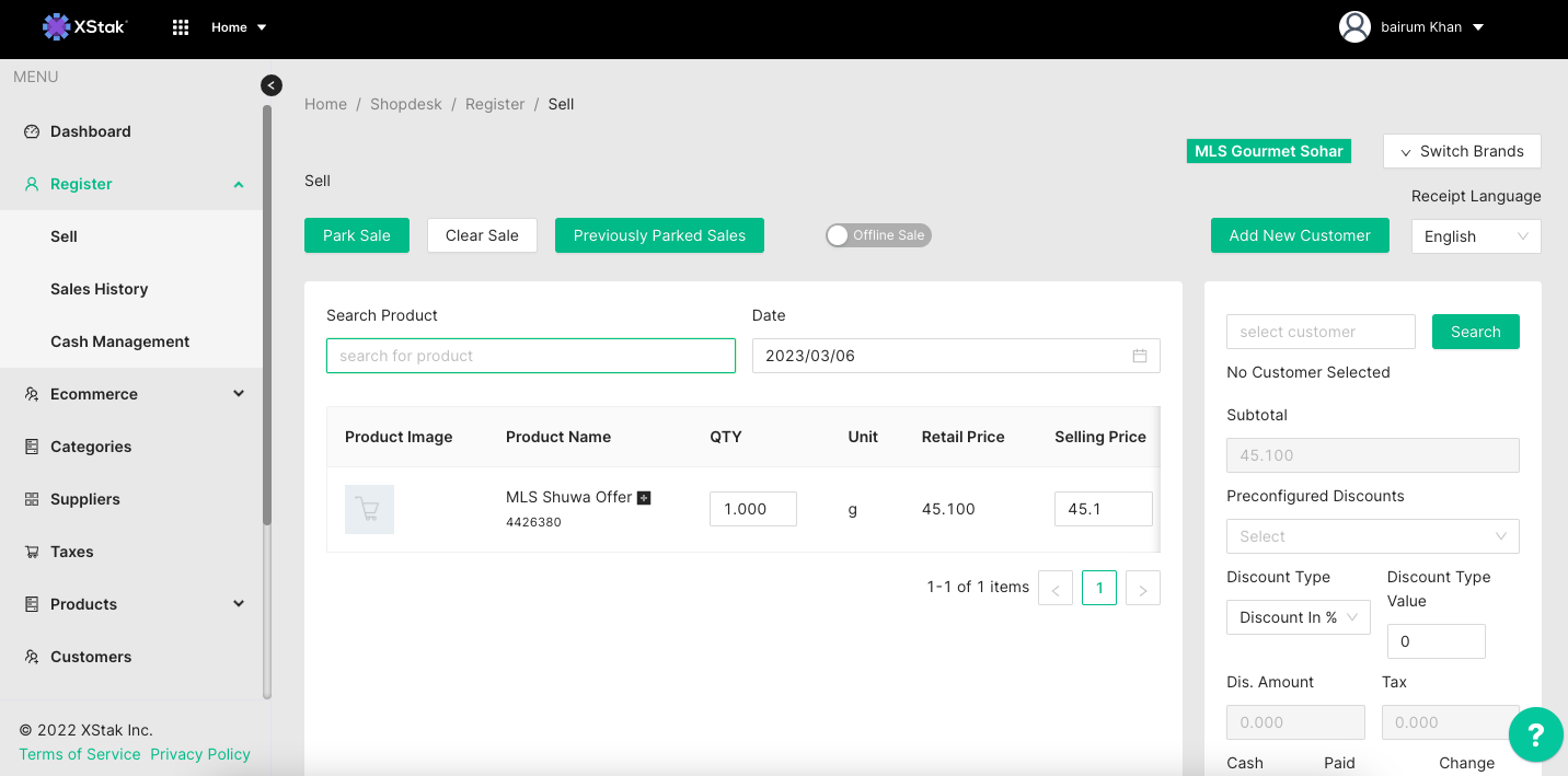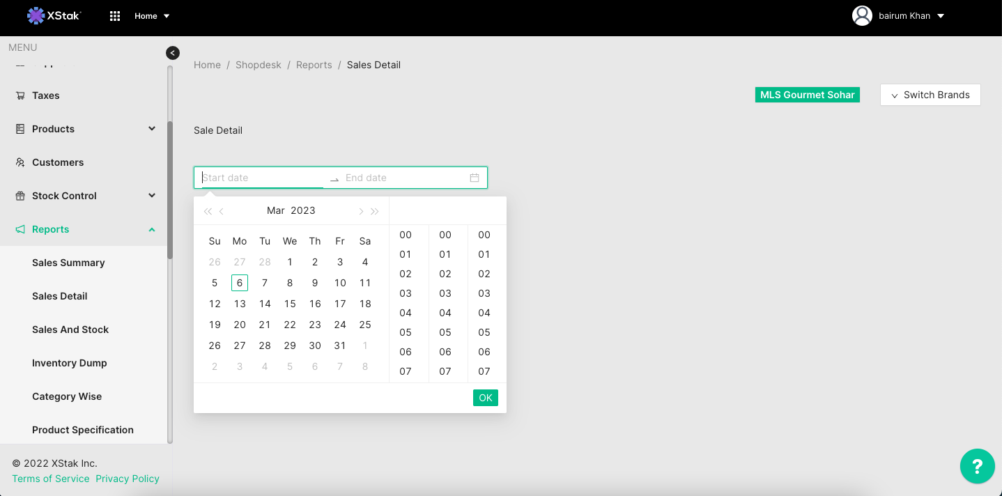 This report can be pulled as per your desired date range with a time filter as well. It gives the entire sales data punched, invoices combined total as per MOP & the total tally of inventory sold.