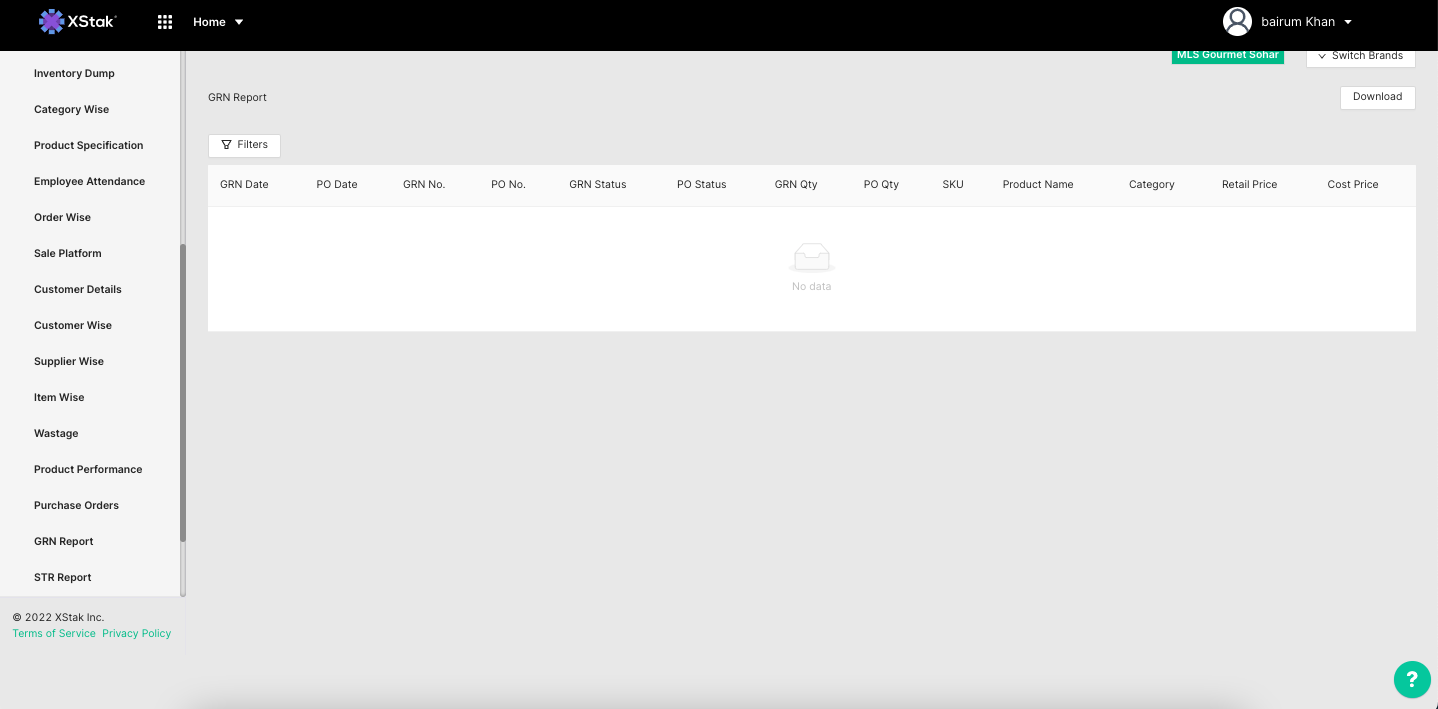 GRN report namely Goods receive note is a report thats generated on the basis of each P.O, to portray what articles were received at the location.