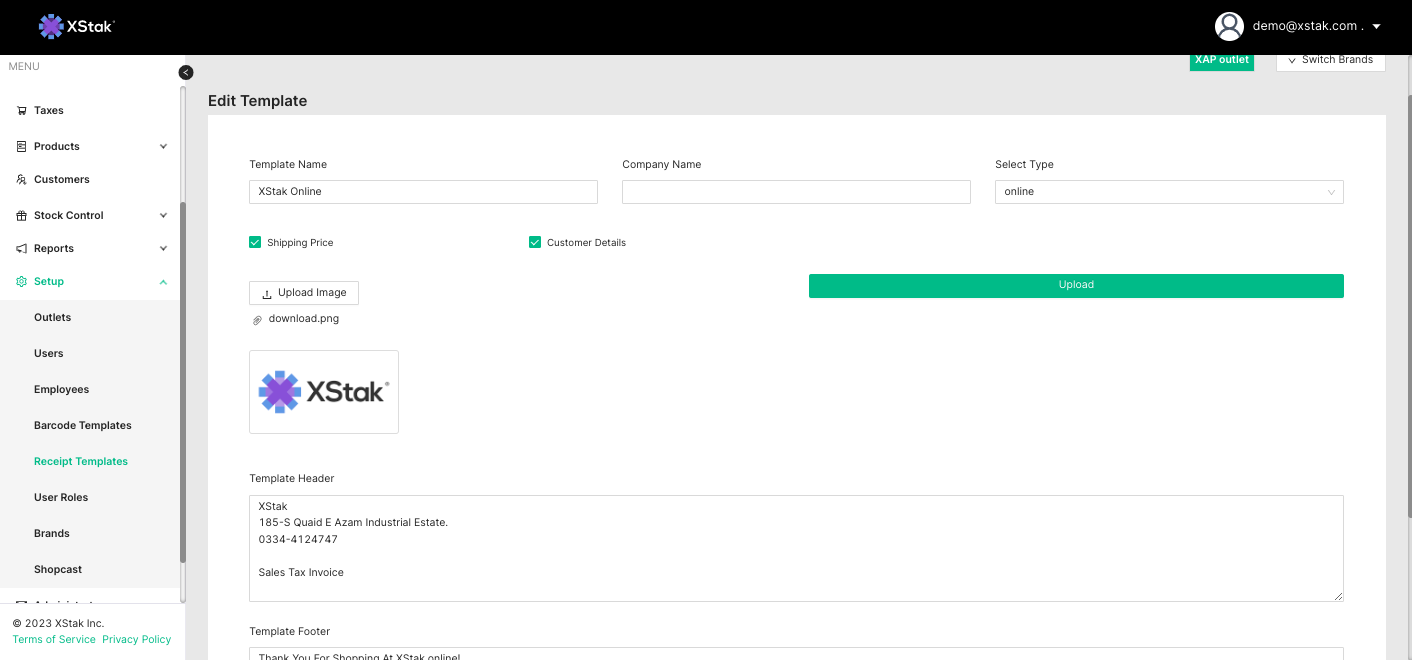 We can now have a custom receipt template for all your online transactions. This feature can be setup from receipt setup under configurations. Please see screenshot 5.1 below.