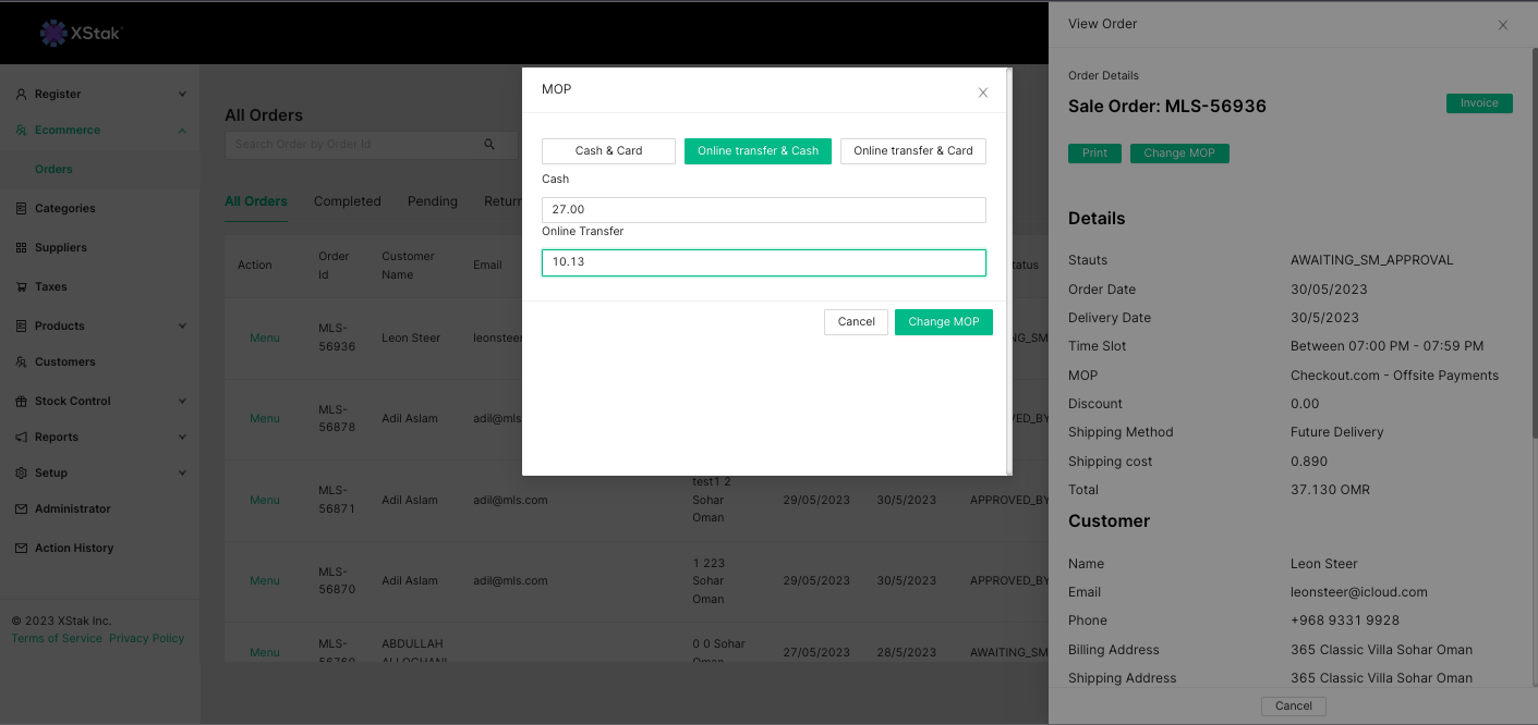 Shopdesk can now edit MOP of an E-commerce order before it is processed and completed.