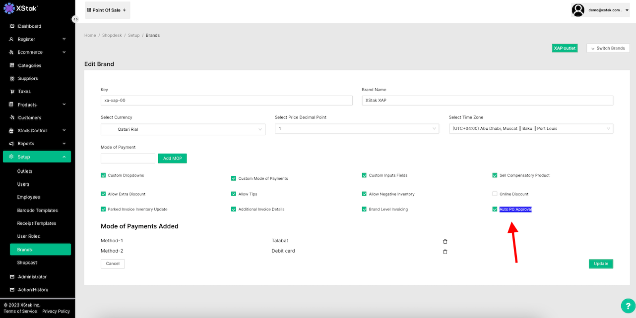 Screenshot 4.1: Brand settings to enable auto approval.
