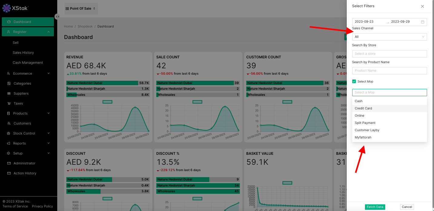 Additional Channel & MOP filters on Shopdesk’s Analytical Dashboard: