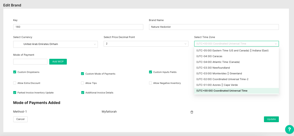 3.2 (Brand settings timezone selection)
