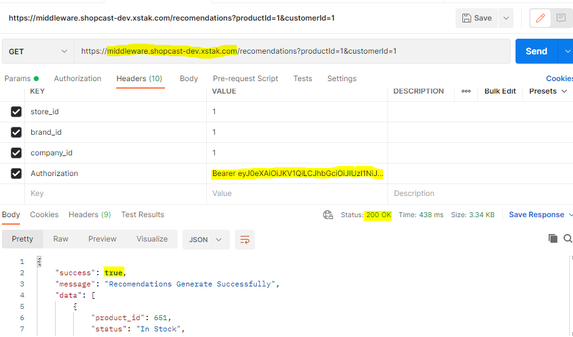 XStak portal token is validated to get a successful response from shopcast middleware.