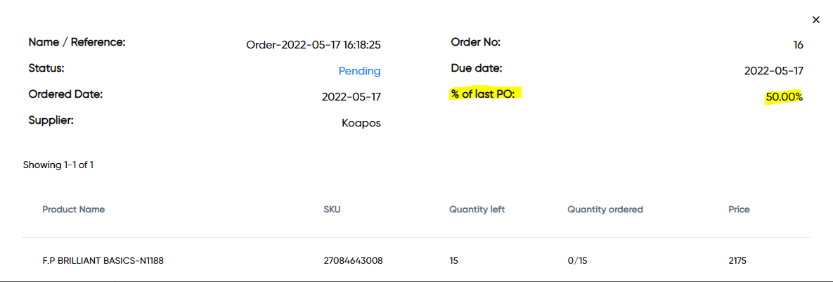 As a user, I want the purchase percentage to be shown in view PO So that it can be more convenient to get the required details