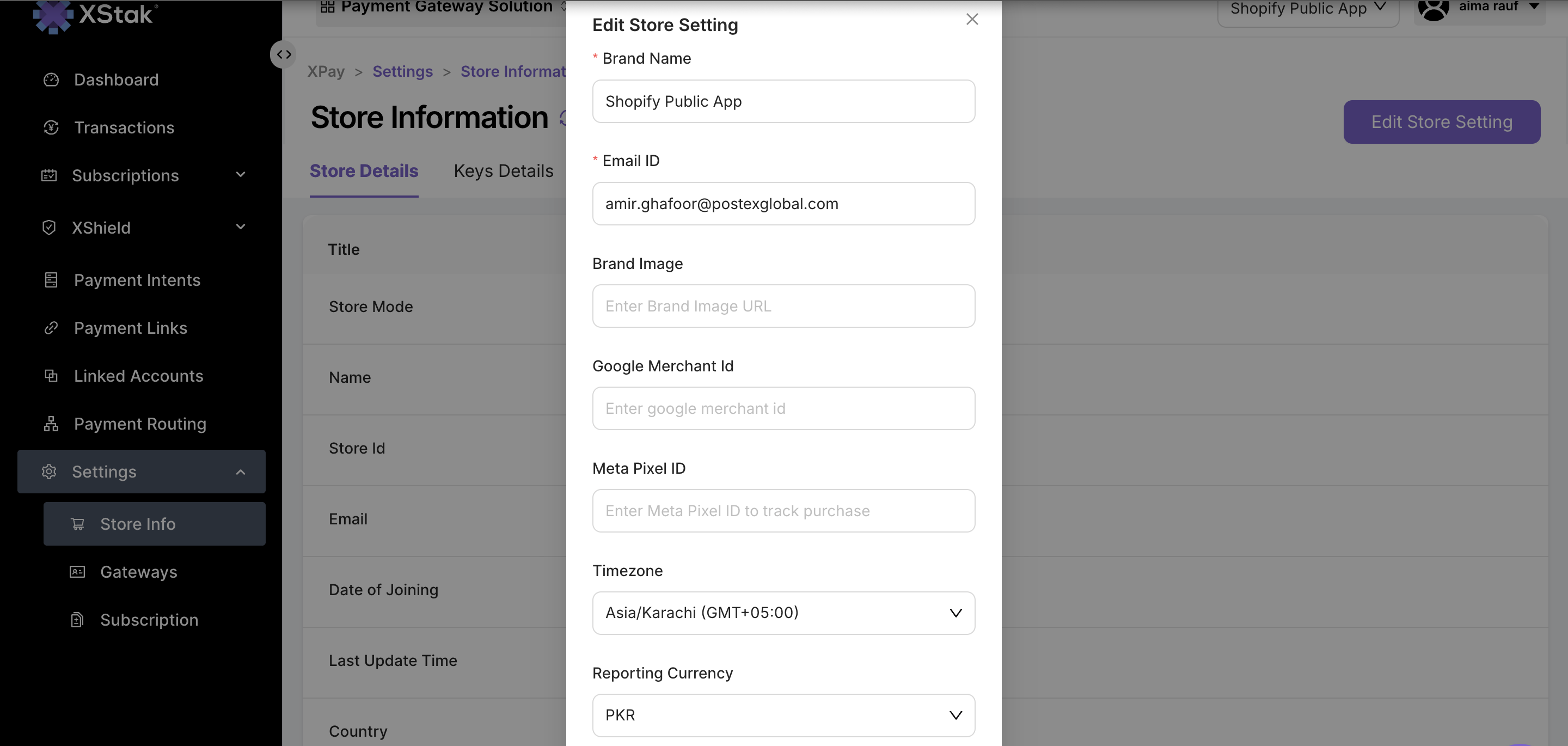 Go to XAP Store settings and click Edit Store Setting.
