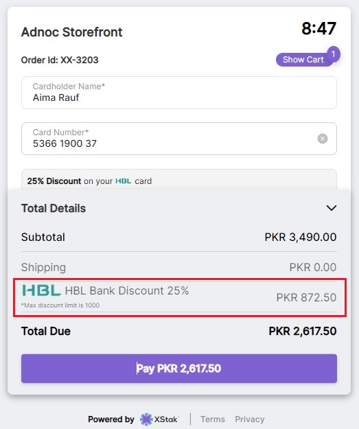 Here's how it works: when a customer adds their card number and a BIN discount is available, the discount will automatically be applied to their purchase. This means that customers can enjoy savings on their purchases with minimal effort on their part.