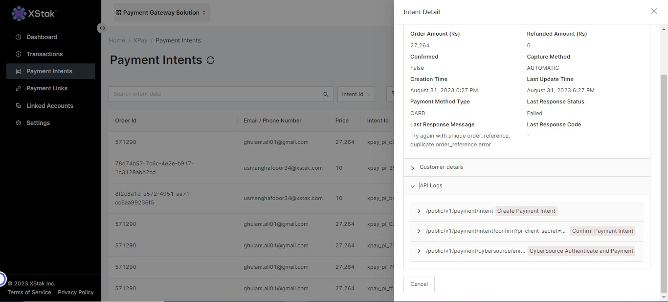 Within Payment Intents, we've seamlessly integrated comprehensive logs that provide a crystal-clear view of your transaction's journey. These logs contain intricate details, including timestamps, status updates, and any relevant event information. This helps users to track the progression of a payment from initiation to completion. In case of any errors or unexpected behavior during the payment process, the logs will capture this information. This enhancement empowers you with unparalleled insights, making debugging and troubleshooting a breeze and offering an added layer of transparency in your interactions with the payment gateway.