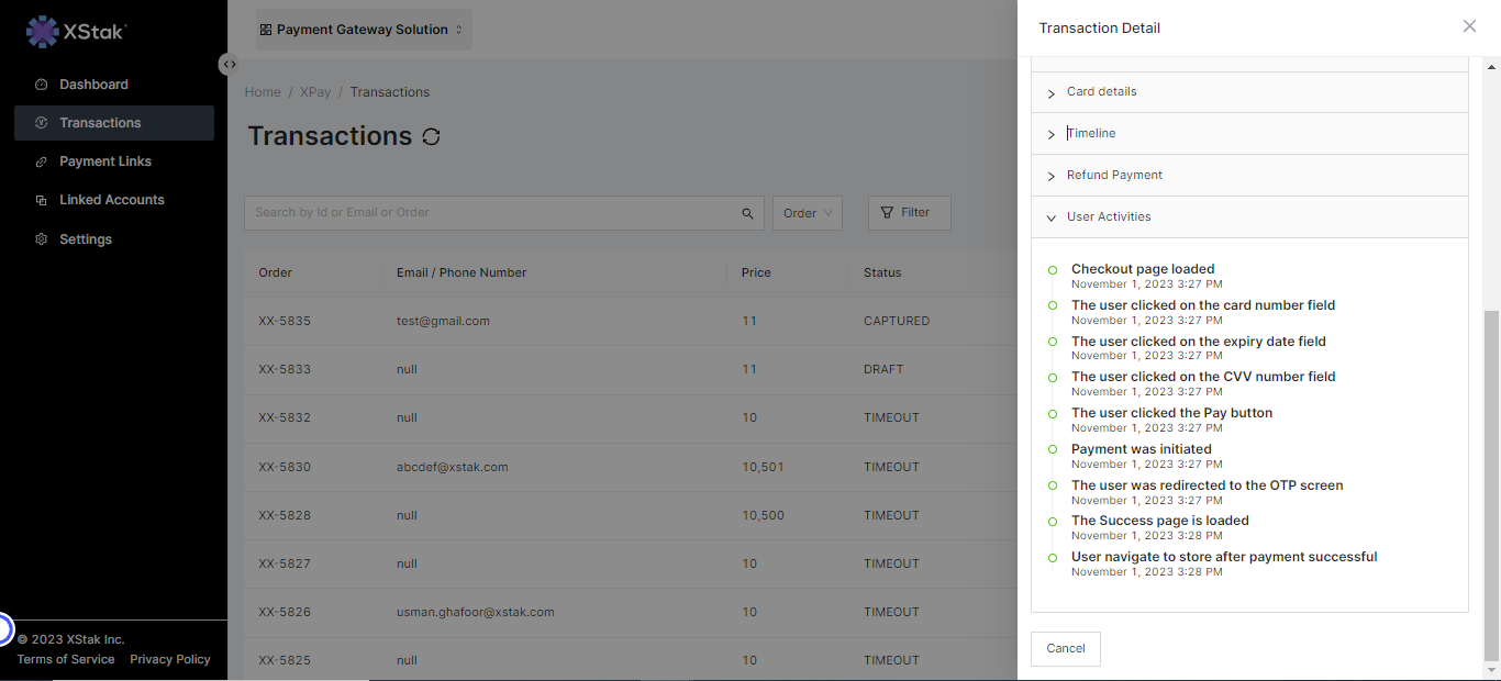 The recorded user activity is seamlessly integrated into the transaction details. Merchants can now view a chronological log of user interactions associated with each transaction. This feature empowers merchants with the ability to monitor user behavior during the payment process. It will serve as a valuable resource for identifying and resolving issues promptly.